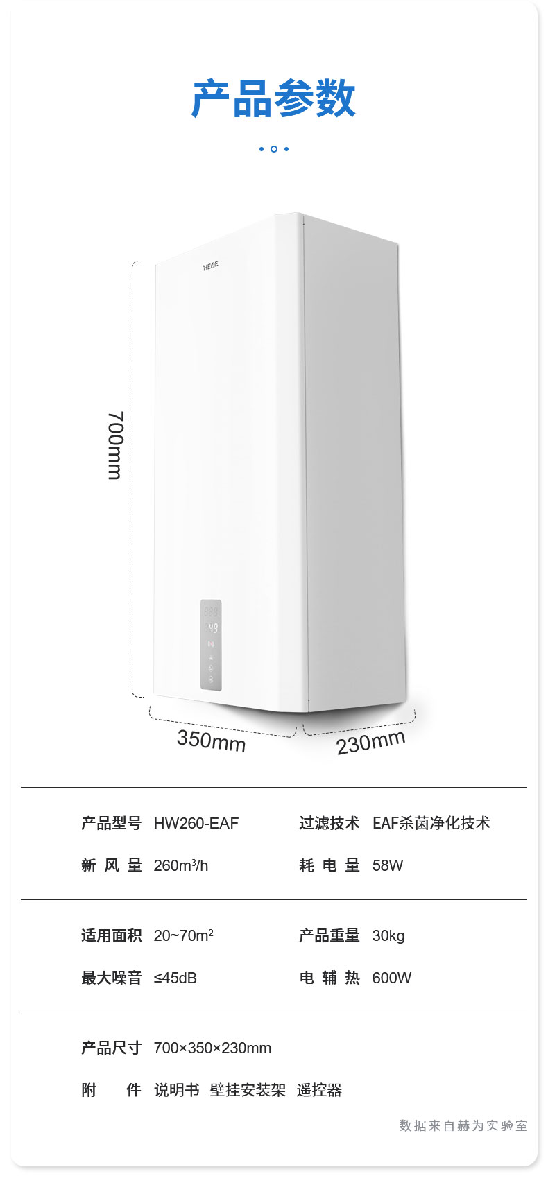 赫為壁掛式新風(fēng)機(jī)HW260-EAF