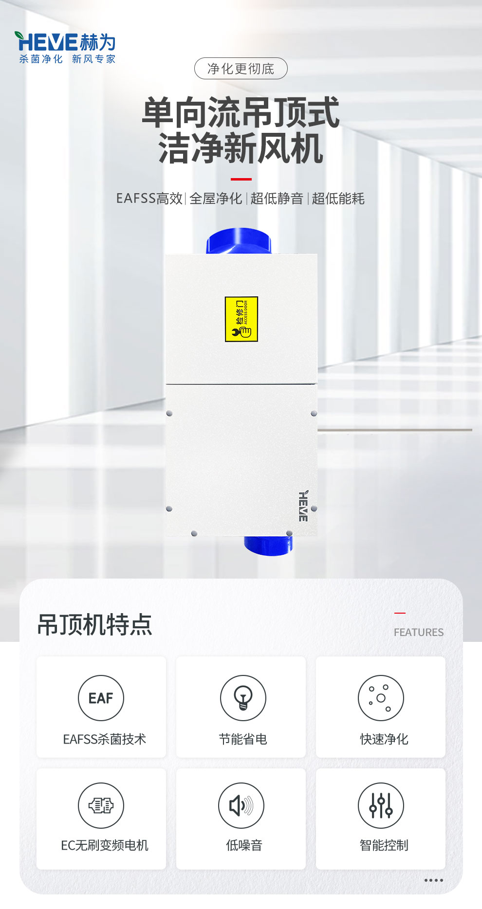 赫為單向流吊頂式殺菌潔凈新風(fēng)機(jī)QHC